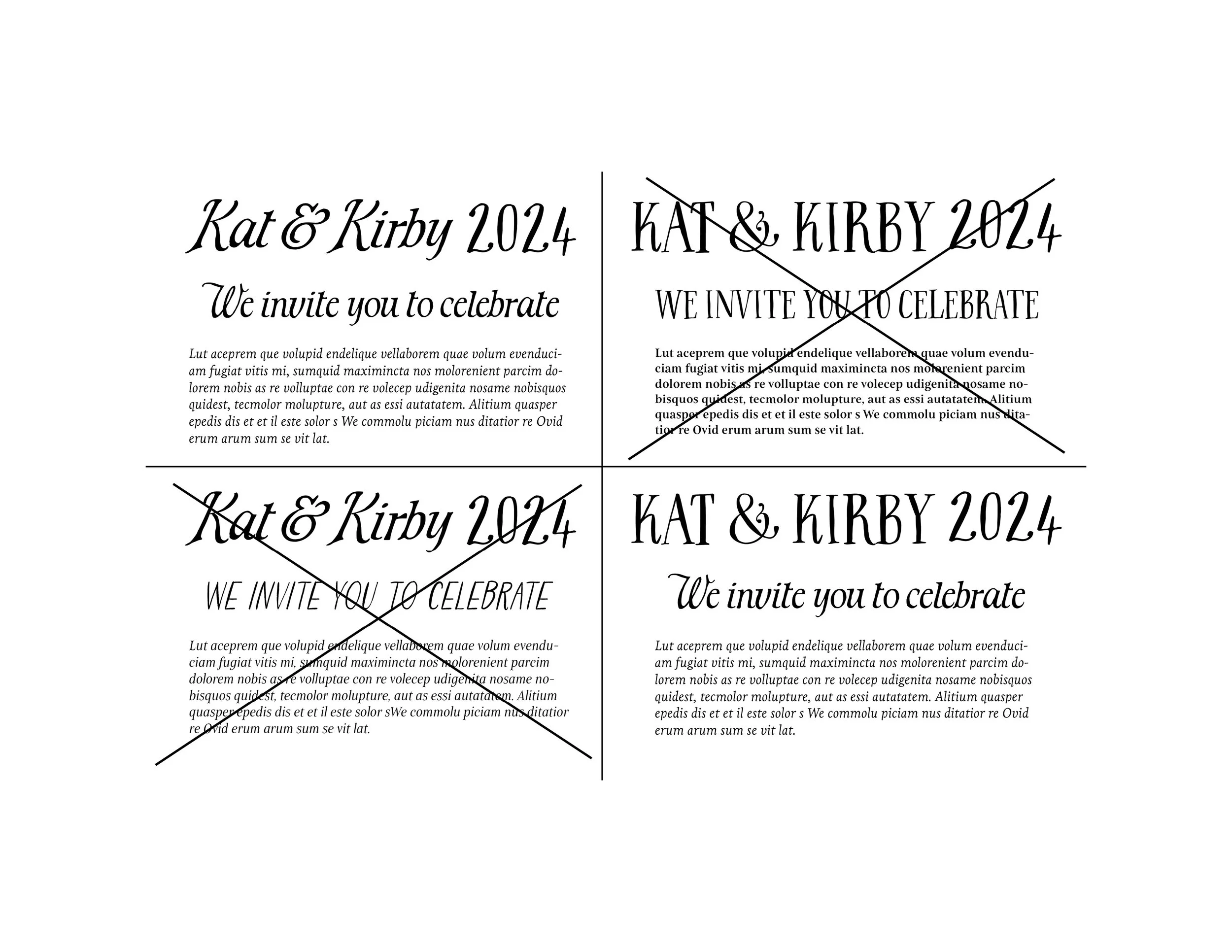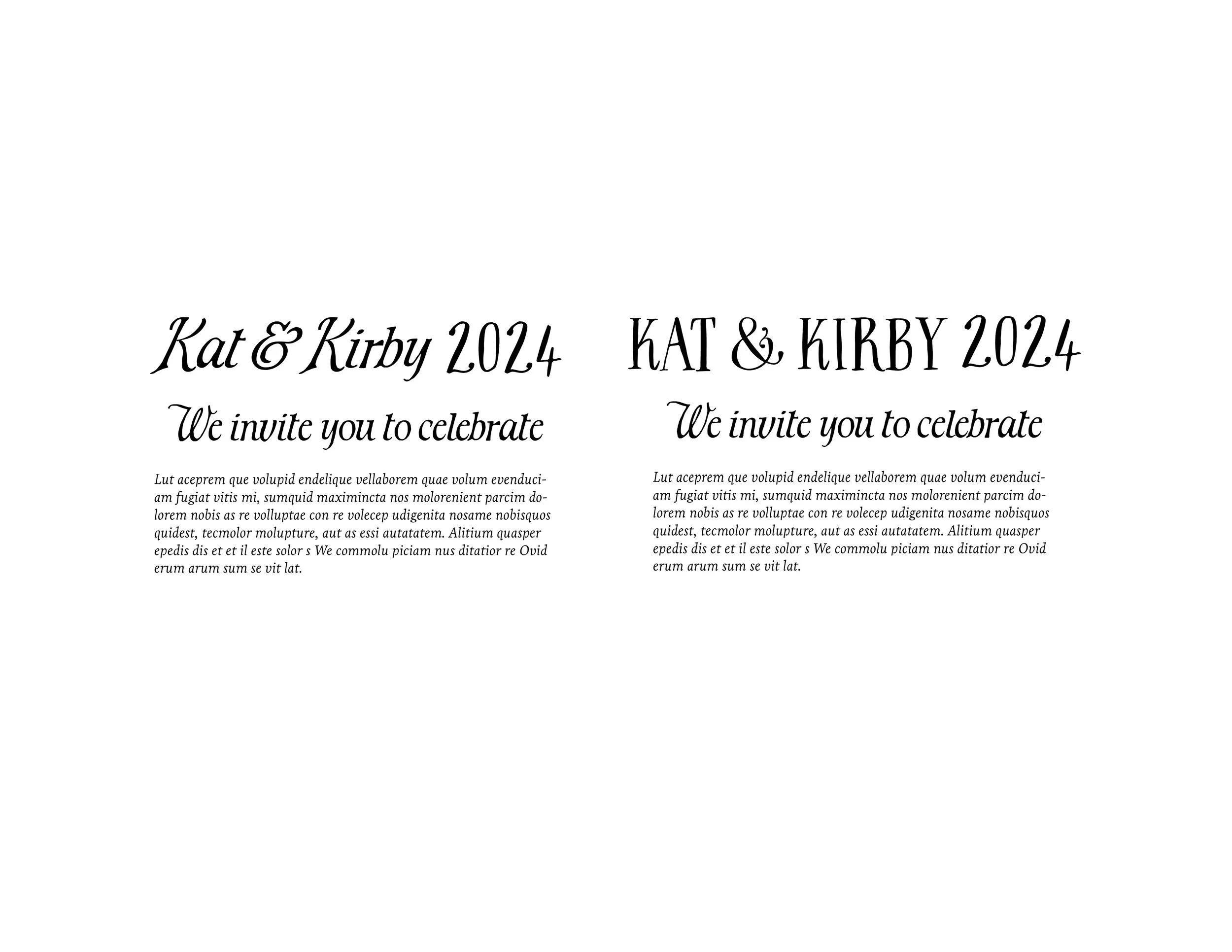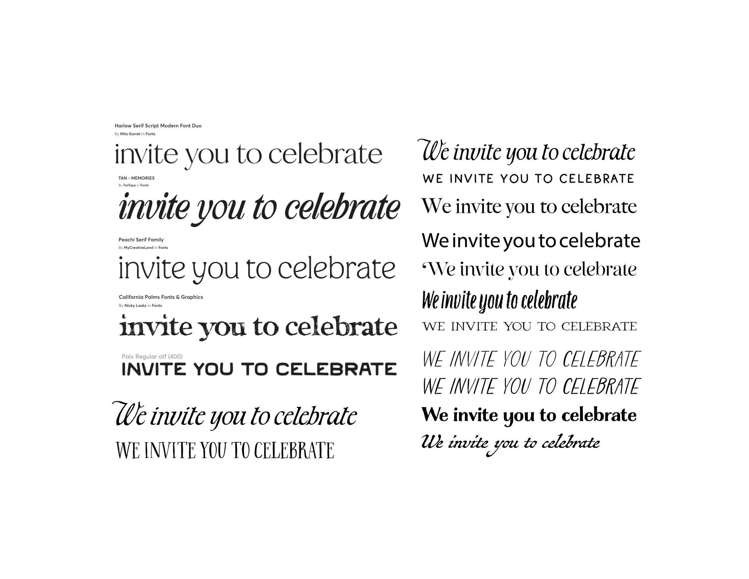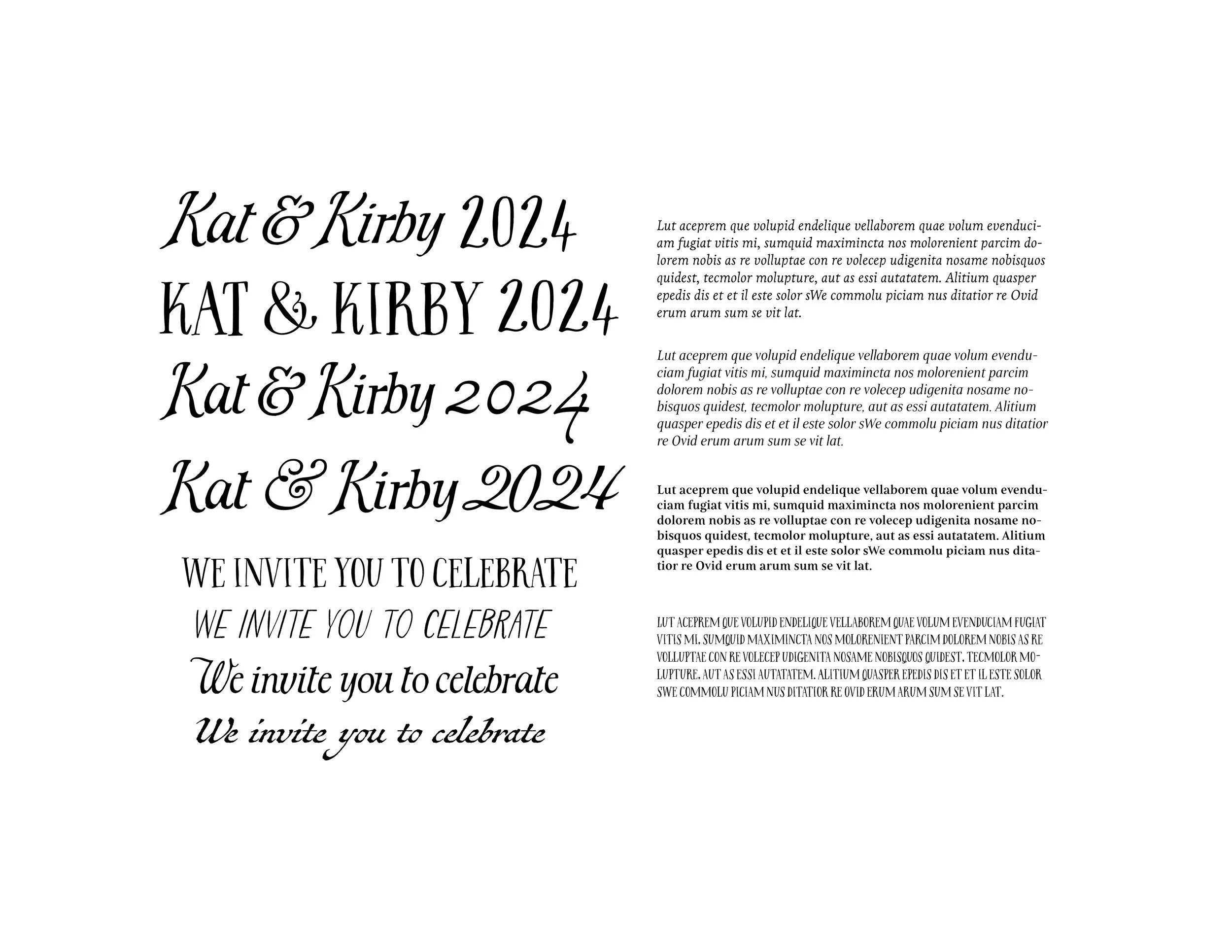 Below is the process in which I chose the different typefaces and pairings that I was going to use for designing all of the save the dates, invitations, decor etc.