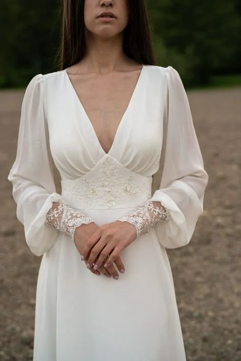 On the right, there are several instances of what I thought I wanted at the beginning. After a fitting at a bridal store, I realized that it wasn’t the direction I wanted anymore. After a lot of back and forth, I finally found the dress I wanted to use as inspiration (below).